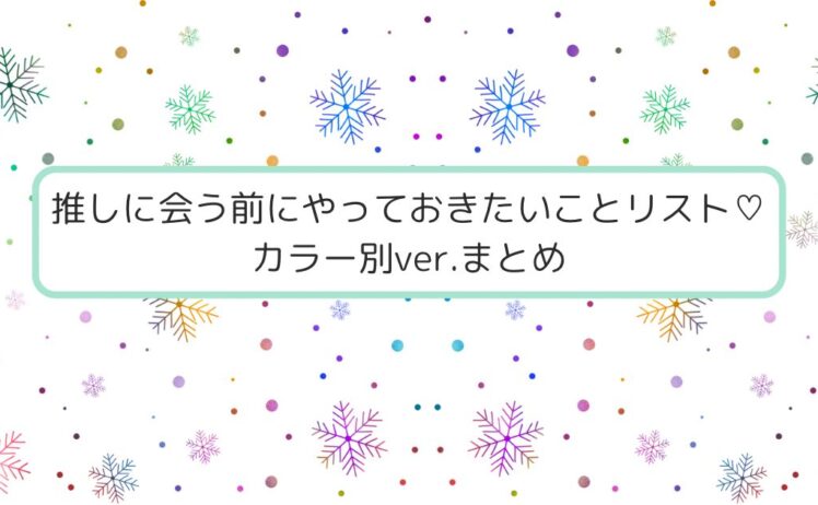 イベント準備・遠征 推しに会う前にやっておきたいことリスト♡カラー別ver.まとめ カラー別リスト一覧閲覧ありがとうございます。保存に関してはご自由にどうぞ!自作発言・無断転載は禁止とさせていただきます。リストに関しての詳細は下記記事をご覧くだ... 2025.10.06 2025.10.07 イベント準備・遠征推し活